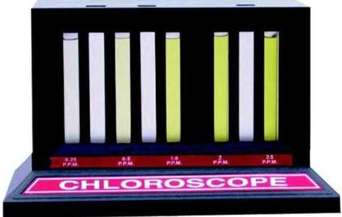 Required in Public Health depts., Water Testing Labs, swimming pools, Industrial Labs. Supplied with Chloro-scope, One square unbreakable test tubes, dropper, 125 ml. reaction reagent. Packed in thermocol box......
